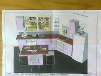 C'est le modéle Monza "parme" de chez Cuisinella, nous nous sommes arrété sur ce modéle aprés avoir fait moultes compromis!! (pas évident de convaincre David sur le modéle rouge de chez monsieur tout le monde..!) finalement, je ne regrette pas ce choix, puisque notre salon est déja rouge.. çà aurait surement fait too much... en tout les cas, là c'est tranché ! osé.. secoué.. dynamique quoi :) finalement cette cuisine nous ressemble beaucoup !. L'îlot c'est un rêve qu'on à pu réaliser et impossible d'imaginer la cuisine sans..!, nous avons aussi commandé une hotte en inox et verre (manque plus que le four). l'évier ne sera pas noir, finalement j'ai changé d'avis.. peur que ce soit salissant! le carrelage en "ardoise" aussi ne sera pas de la partie, finalement je laisserais sur toute la "piece de vie" le carrelage 4 format en grés (beige/blanc) que vous avons choisi.