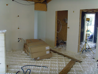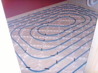 La pose du plancher chauffant isolant polystirène + tuyau de PER ! nous avons eu un soucis technique sur l'étude qui avait été faite, heureusement le fournisseur a reconnu l'erreur et à fais preuve de professionnalisme en remediant au probléme, nous avons donc pu continuer sur notre lancée sans perdre trop de temps, je mettrais d'autres photos demain.