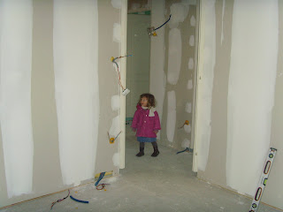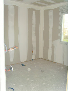 Vue sur la future cuisine (l' evier sera face à la fenetre) on peut aussi voir la baie à galandage.