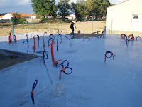 Pose des gaines electrique et circuit d'eau avant de couler la chappe