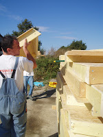 Preparation des murs en bois.... tout le monde s'y colle!
