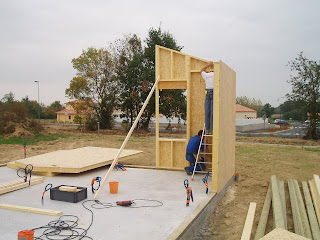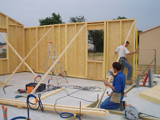 et çà continue... a la fin de la journée, la moitié de la maison est posé mais je n'ai pas pris les photos, il fesait trop sombre!!! (ils ont travaillé dans le noir!)